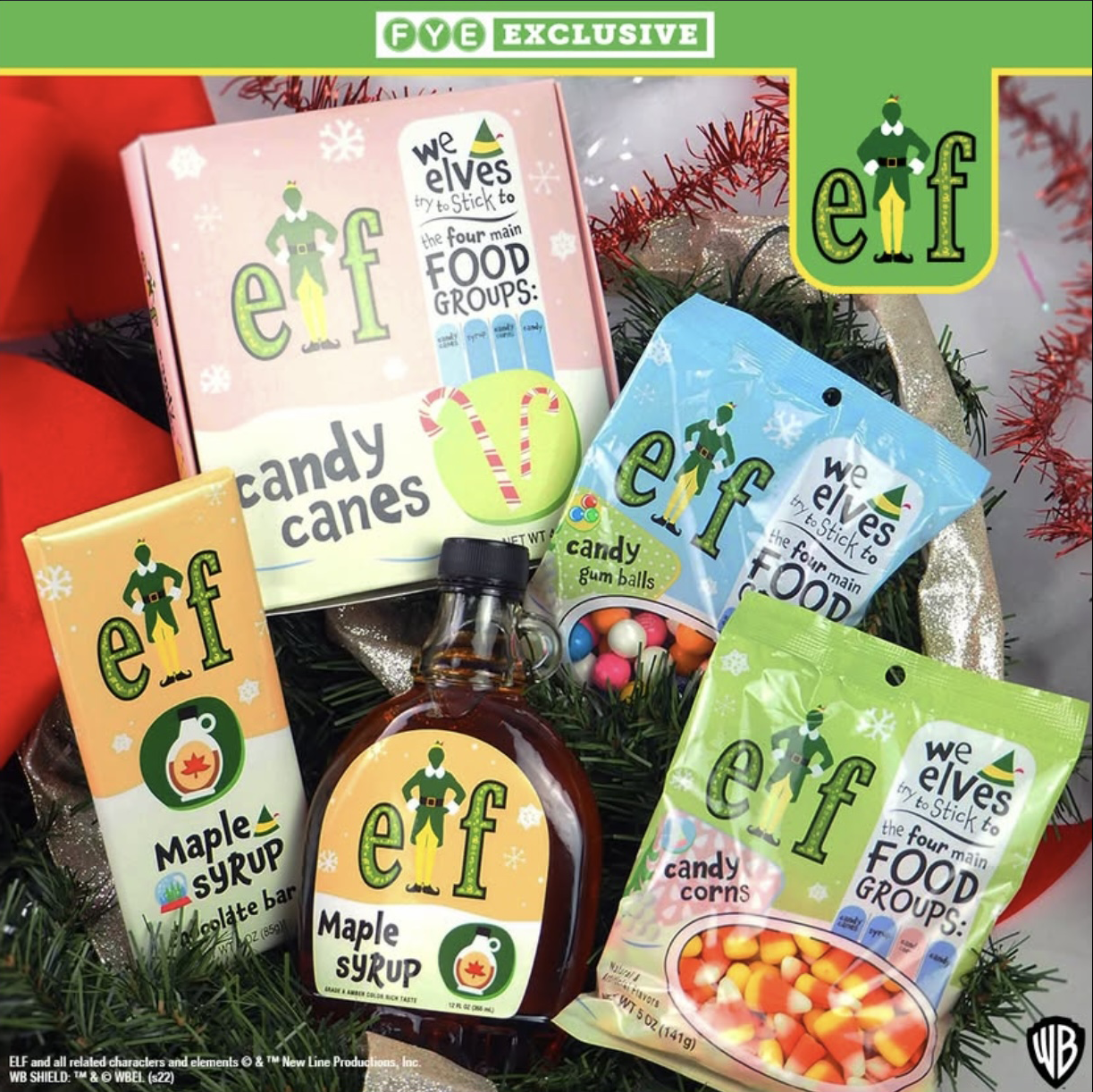 Elf consumable treats is an exclusive line for FYE, designed in-house with official art. Capturing the joy of this now holiday classic, items like candy canes, candy, chocolate and maple syrup were essential picks for forming this collection.